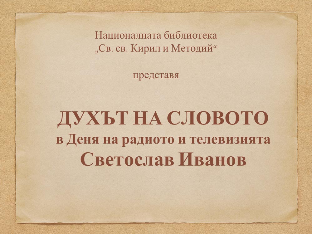 Светослав Иванов в “Духът на словото” Share on FacebookShare on TwitterShare on Linkedin НБКМ2020-05-06T19:18:23+03:0007.05.2020|"Духът на словото"|