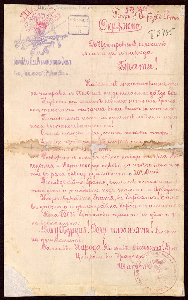 Според решенията на Берлинския конгрес (1878) Македония и Одринско остават в европейските владения на Османската империя. Българите започват своята борба срещу несправедливия Берлинския договор още през есента на 1878 г. с Кресненско-Разложкото въстание. Първоначално тя е неорганизирана, стихийна, без единен център и ръководство. С възникването на революционни групи, кръжоци и дружества постепенно назряват и условията за преодоляване на стихийността в освободителните борби в Македония и Одринска Тракия. На 23 октомври 1893 г. Даме Груев и петима негови другари се събират в Солун и създават комитет, който има за цел да противодейства на сръбската и гръцката пропаганда в Македония и Одринско и да се бори за свободата на българите. Създателите и ръководителите на Вътрешната македоно-одринска организация (ВМОРО) отчитат опита, добит през Възраждането, възприемат от организационните принципи на Вътрешната революционна организация (ВРО), създадена и ръководена от Васил Левски.