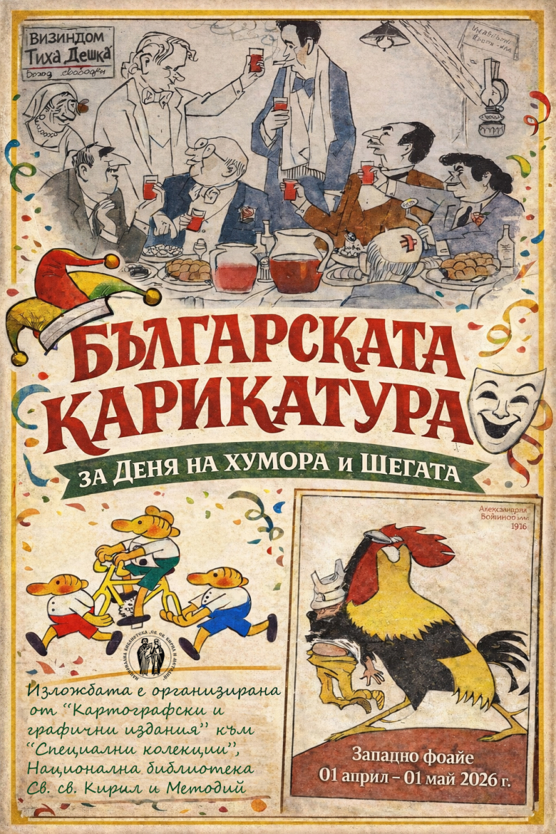 По повод 1 април – Международния ден на хумора и шегата, в Националната библиотека „Св. св. Кирил и Методий“ е експонирана изложбата „Българската карикатура“, която може да бъде разгледана до 1 май 2026 г.