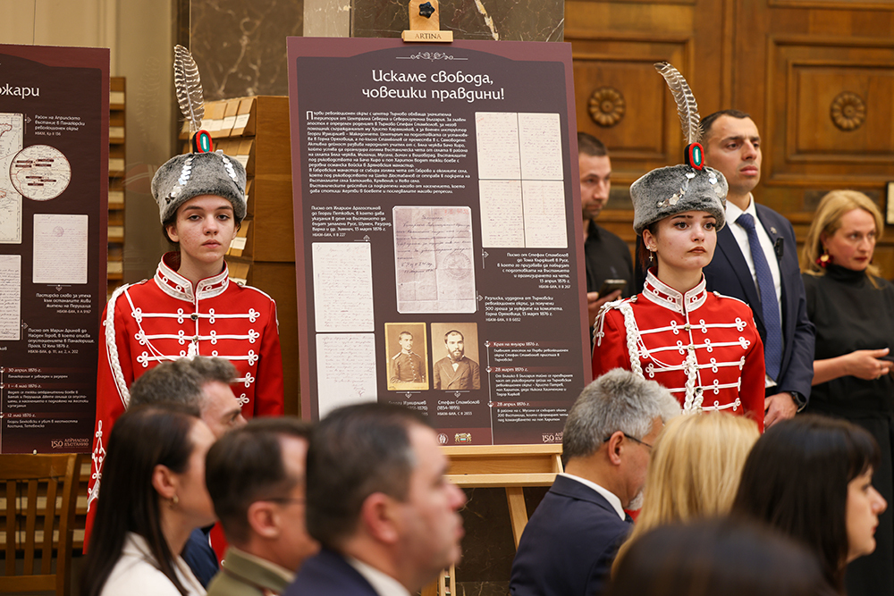 Президентът на Република България, г-жа Илияна Йотова, под чийто патронаж се реализира изложбата заяви, че „тази изложба е изложба на безсмъртието“. Тя акцентира, че откриването на изложбата на място като Националната библиотека е символично и трудно би могло да има по-подходящо пространство за подобна експозиция. Президентът подчерта, че през изминалите 150 години, независимо от историческите интерпретации, в българското съзнание винаги остава „запазено място“ за събитията от 1876 г., които с гордост наричаме революция и въстание.